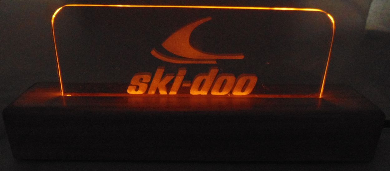 We are now creating custom LED side lit signs with a homemade hardwood base. These are not mass produced imported junk. All hand built with quality products. The base can be made out of any type of wood that you desire. We are going to offer Red Oak and Poplar as shelf items. We can custom do any Vintage Snowmobile logo that we can get access to. We will be expanding our offerings as we create more artwork.