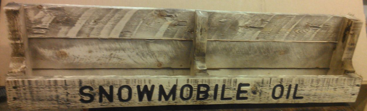 2 stroke motor oil reclaimed wood shelves. Hand routered designs! Current price is $45.00 each.
